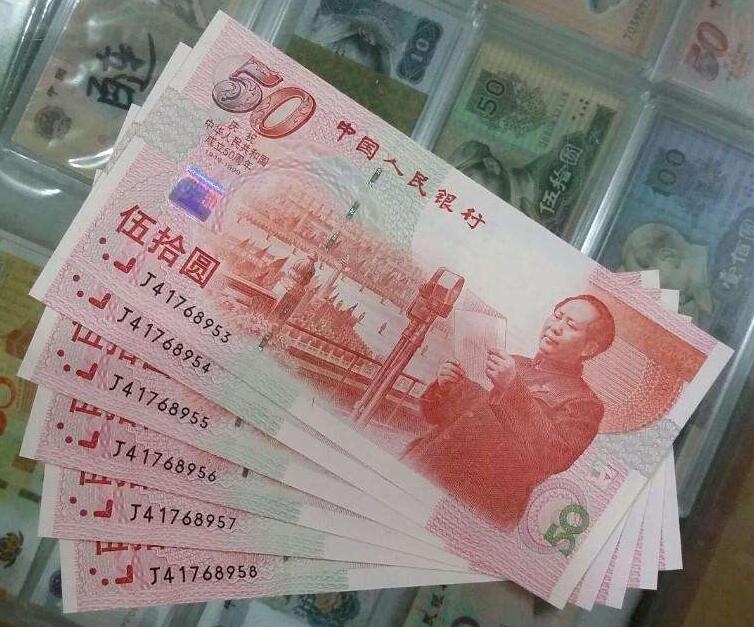 2、第二套建国XX周年纪念钞:面额50元,因题材、存量和市场需求差异,价格有所差异。