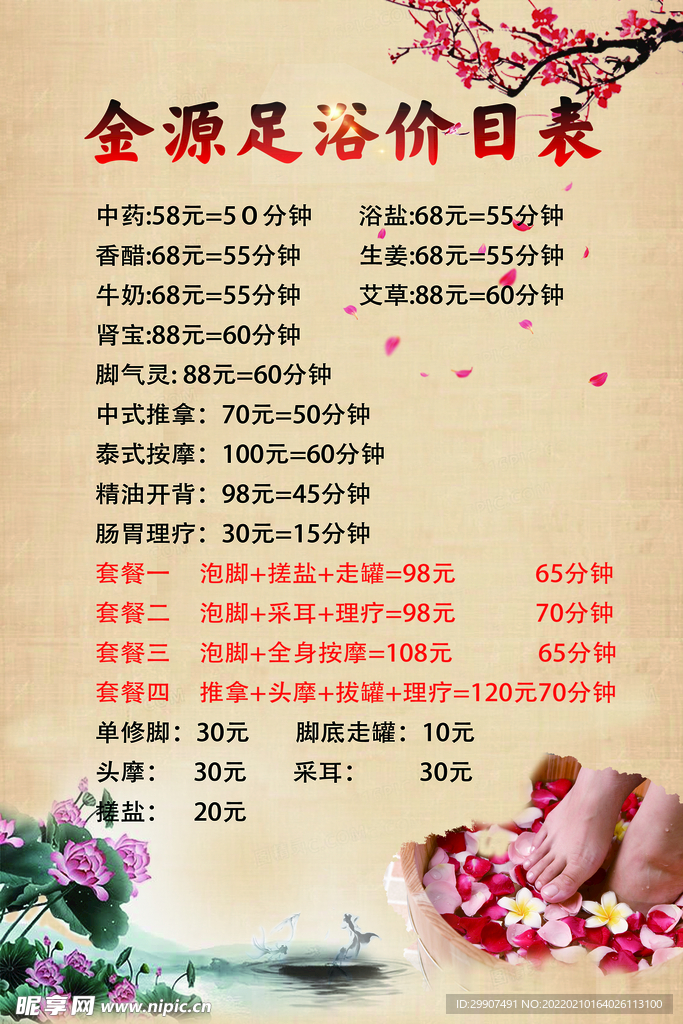 二、最新足疗价目表图概览